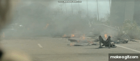 REV-9 Endoskeleton takes a bazooka blast head on, and is undamaged, but is temporary KOed.