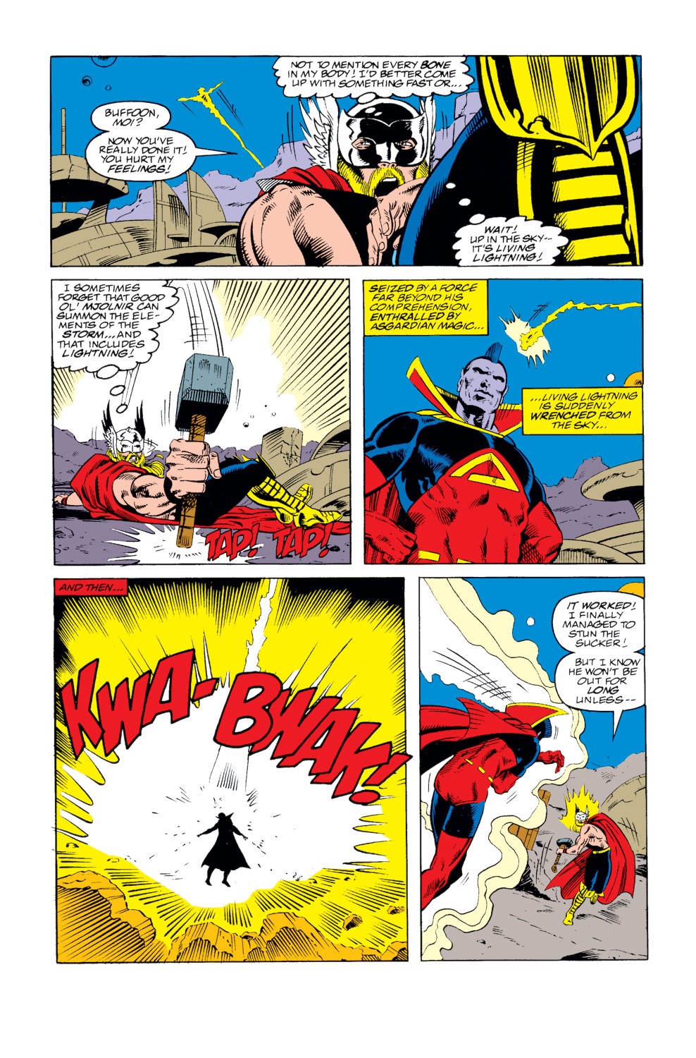 Ur making self assumptions while i was showing scans and there "dialoges" to proove my point.I already prooved thor was distracted when gladiator blitzed him..Also,it was a wrong move,he might have blitzed directly on thor,but he didnt.Ripping apart building causes harm to near by people..Now,stop covering it!
