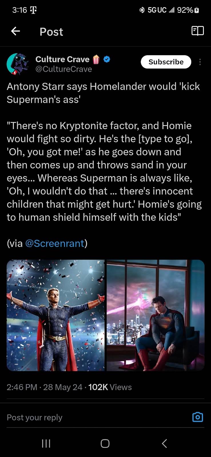 Superman (DCEU) @Rotemeg Hey you don't have to take this battle that serious man. Let others comment what they think.