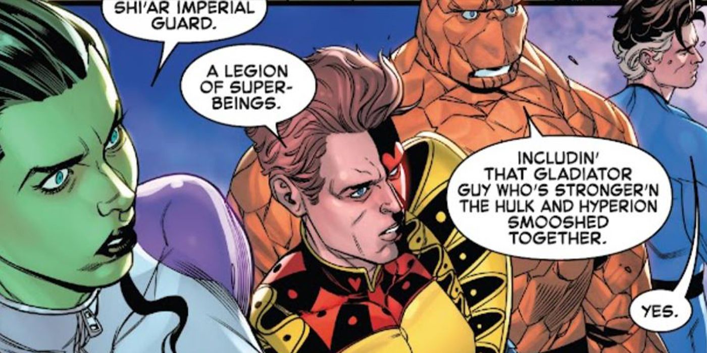 Hulk & Hyperion According to the Thing Gladiator's stronger than both combined. That's quite the statement.