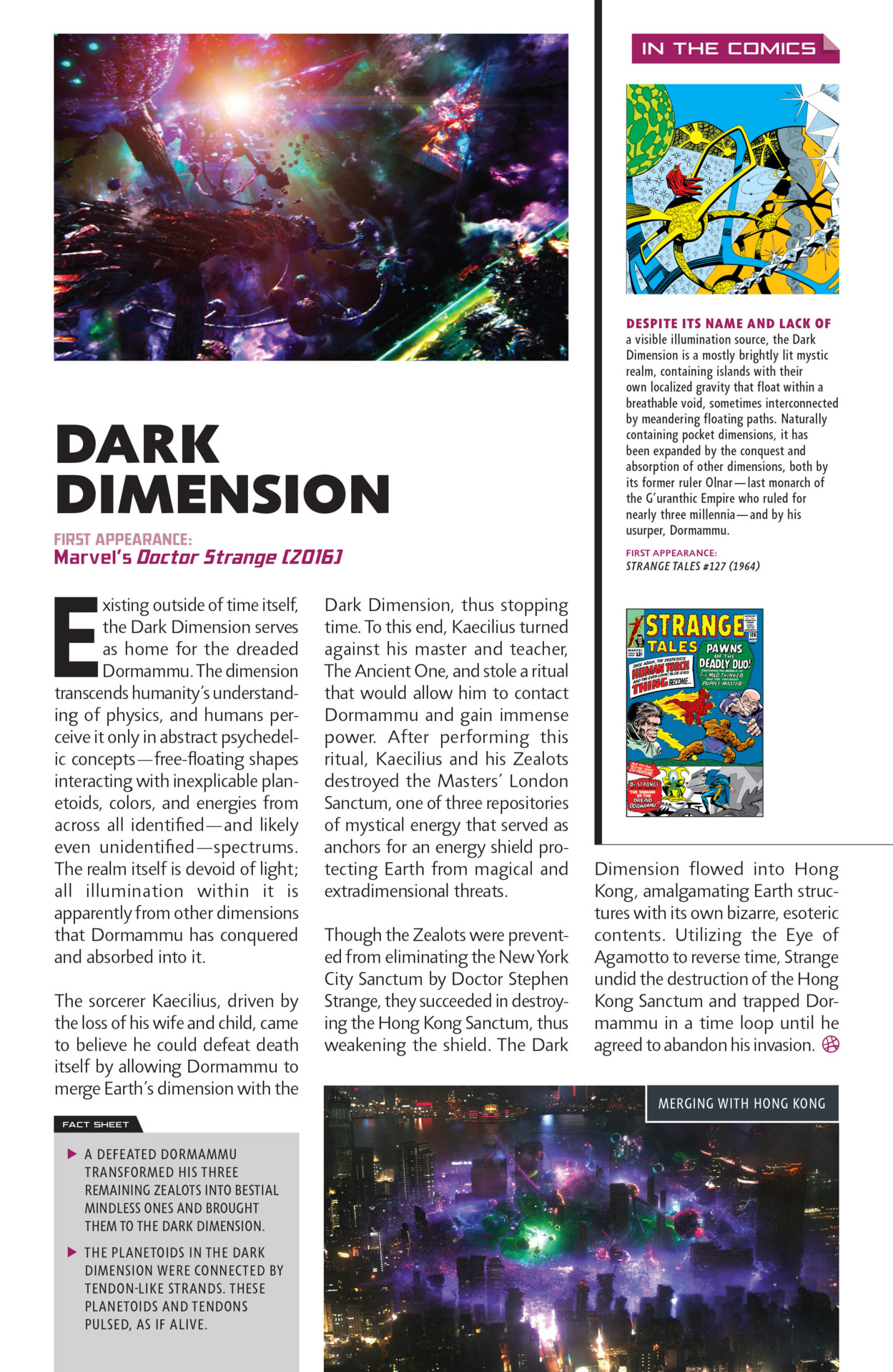 "Existing outside of time the Dark Dimension serves as a home for the dreaded Dormammu the dominion transcends humanity's understanding of physics and humans perceive it only in abstract phallic concepts free-floating shapes interacting with inexplicable planetoids colors energies from across all identified and likely even unidentified spectrums the realm itself is devoid of light all illumination within it is apparently from other dimensions that Dormammu has absorbed into it."