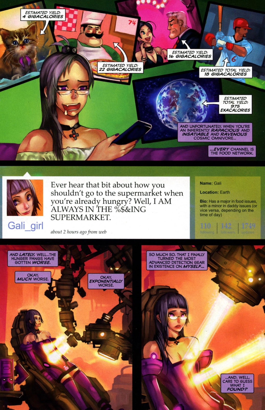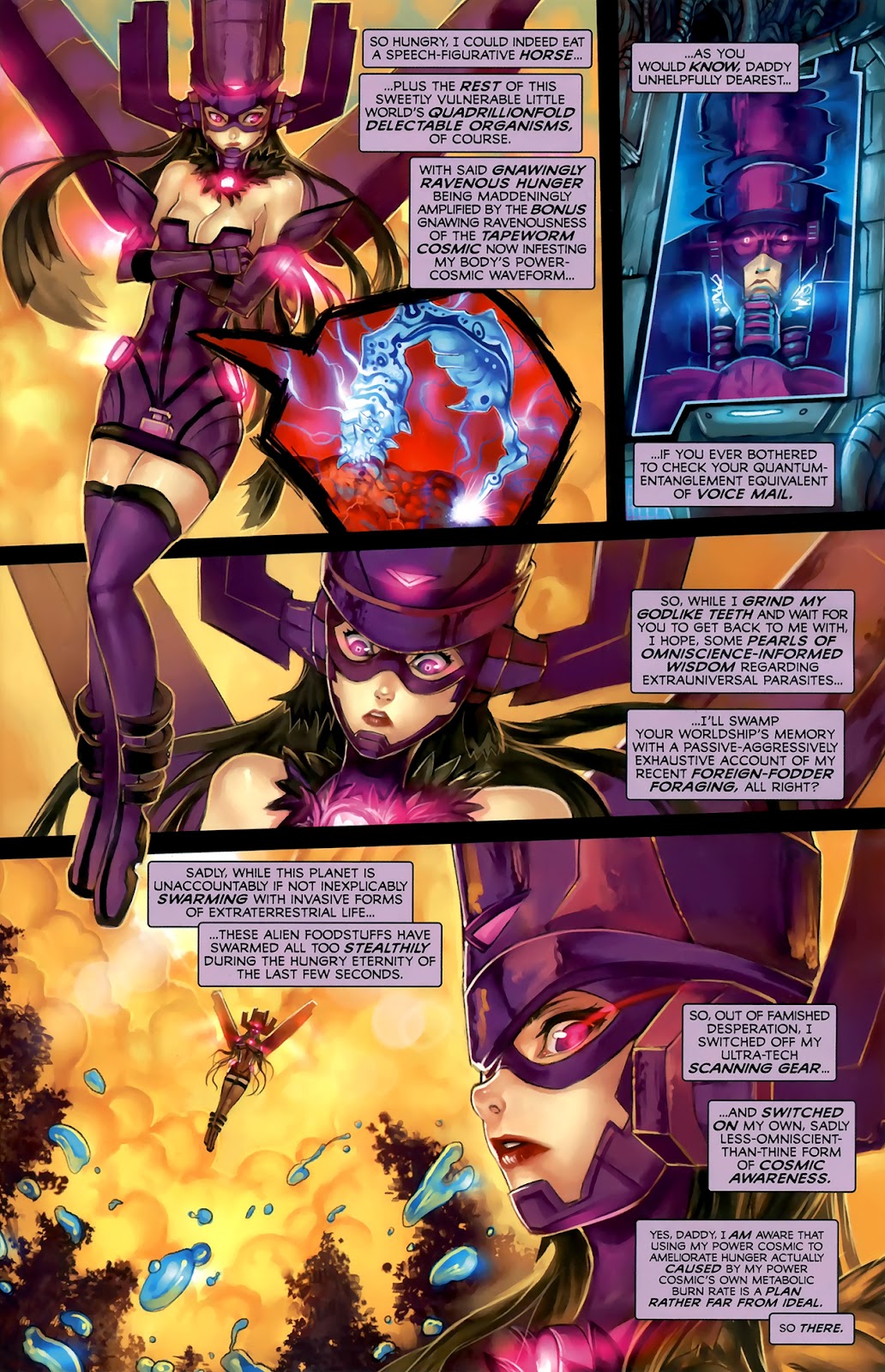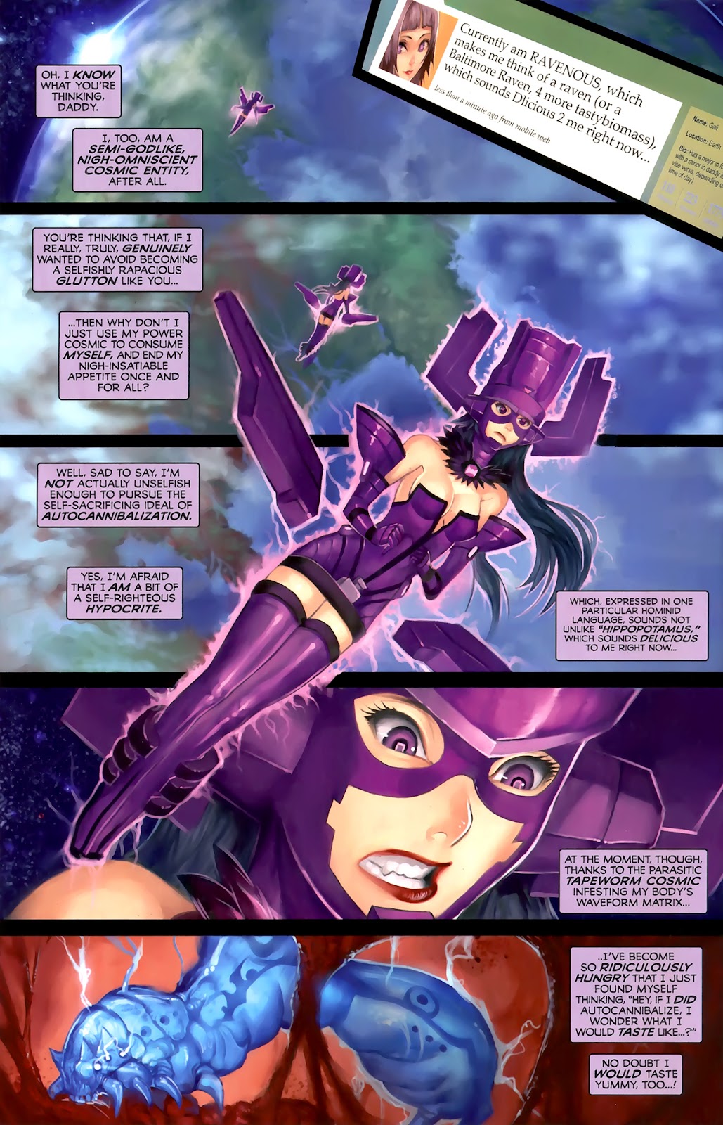 Possesses the Power Cosmic and is described as being a 'Godlike Cosmic Omnivore', similarly to Galactus: